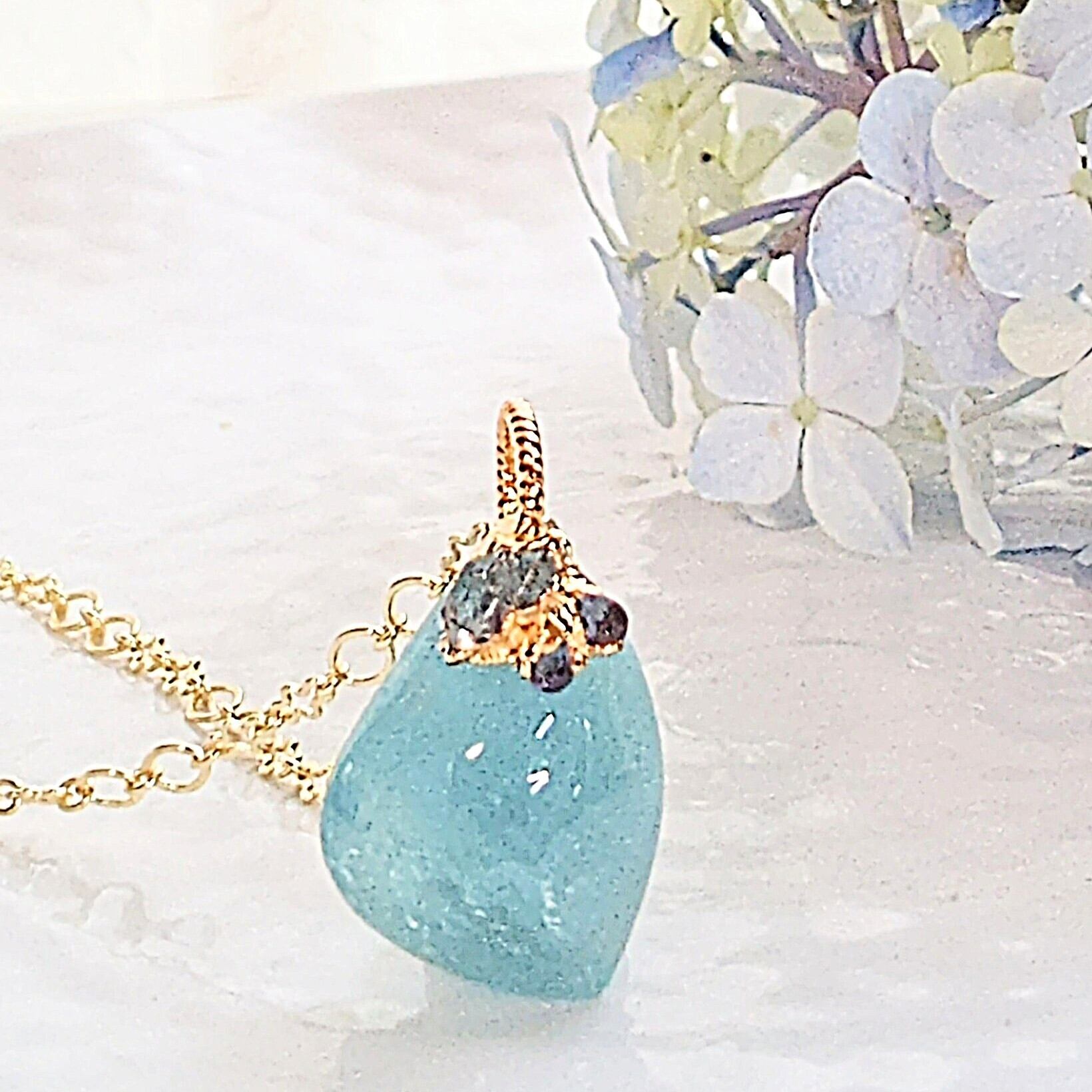 透明感の美しいアクアマリン タンブルのペンダントです。