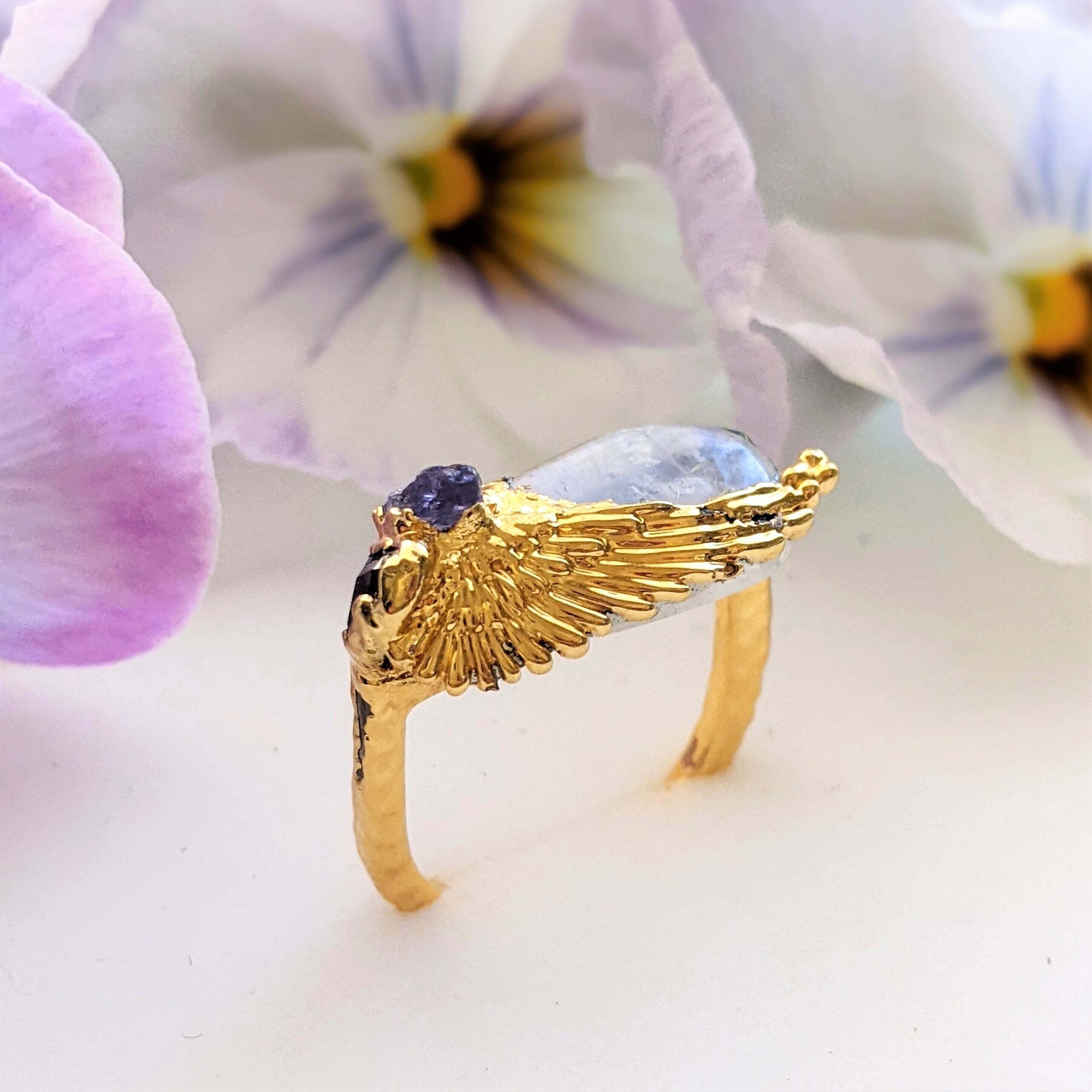 アイオライト、ピンクトルマリンをアクセントに天使の羽をデザインししました。